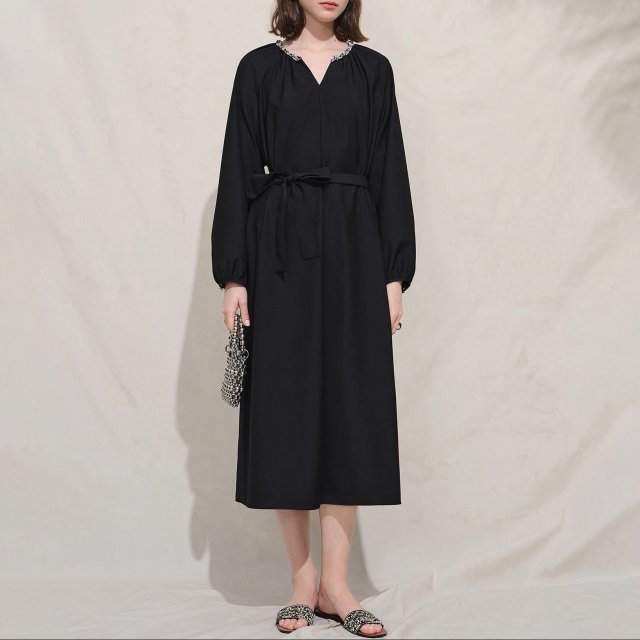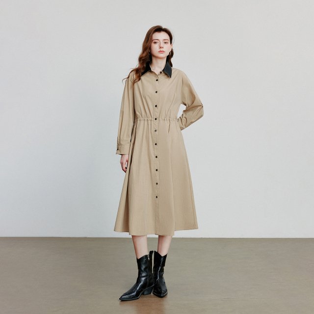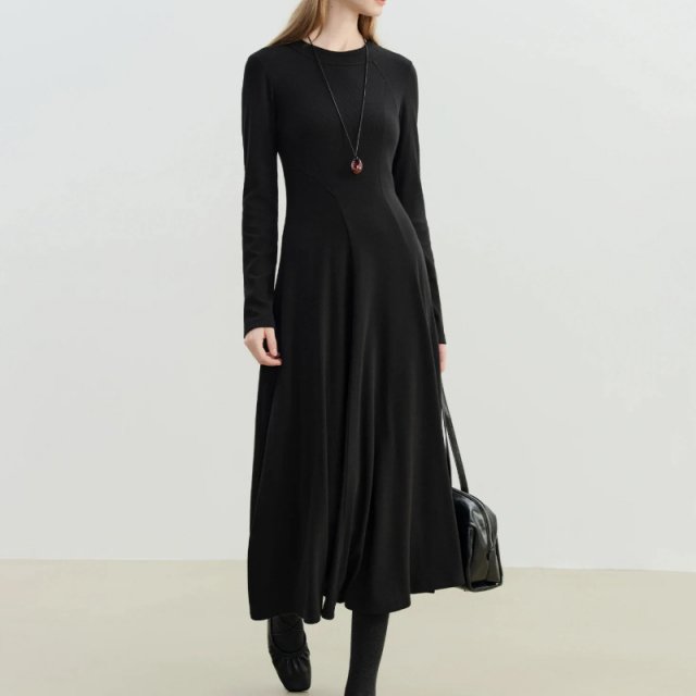 This dress is thoughtfully made with an empire waistline that enhances your natural shape, while the O-neckline and full sleeves create a timeless, elegant profile. The lightweight synthetic fiber blend—polyester, viscose, and spandex—offers breathability, flexibility, and a smooth drape that flatters without clinging. Its pullover design ensures easy wear, and the slight stretch keeps you comfortable throughout the day. Ideal for autumn, it pairs perfectly with heels, boots, or layered outerwear for a polished seasonal look.