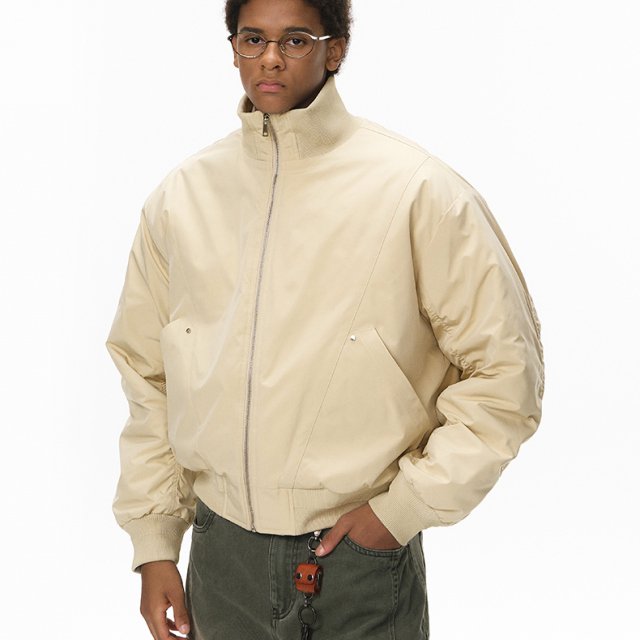 What makes this bomber jacket special is its careful blend of streetwear influence and refined simplicity. Its deconstructed cleanfit design gives it a modern edge, while the padded construction ensures warmth in cold-weather settings. With no unnecessary details or decorations, the jacket maintains a sleek, sophisticated style that works effortlessly across multiple looks.