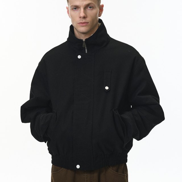 This jacket brings together essential features that make it a practical and appealing choice for daily wear. Its regular fit and mandarin collar offer a clean silhouette, while the contrast-color design adds a subtle touch of vintage streetwear flair. The full-zip opening makes it easy to slip on and off, and the hood adds extra protection on windy or chilly days. Available in light apricot, khaki, and black, it pairs effortlessly with jeans, joggers, or layered outfits.