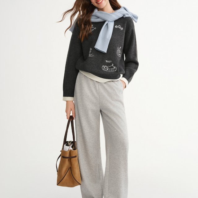 These pants stand out for their balance of comfort and elegance. The blend of wool and silk adds natural softness and luxury, while polyester and viscose provide shape retention and smooth texture. Their embroidered detailing and front-seam finish create a refined, modern look inspired by classic French design elements. With their easy elastic waist and adaptable styling, they transition effortlessly from relaxed days at home to polished casual outings.