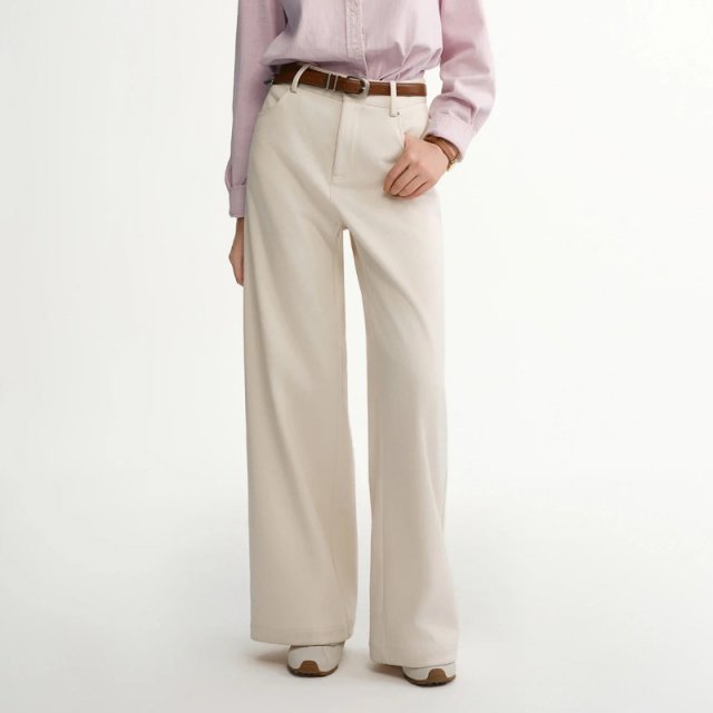 These pants are made for cold-weather days when you want to feel relaxed but still look put together. The high waist with an adjustable drawstring gently shapes your waist while offering flexibility and comfort. The wide straight legs fall naturally, creating a flattering silhouette that suits many body types. With their soft knit construction and slight stretch, they move with you instead of restricting you.