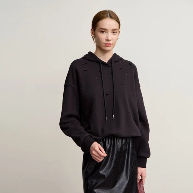 This hoodie is best worn during fall and winter, especially for office days, casual outings, weekend coffee runs, or indoor work settings. It pairs beautifully with tailored pants, skirts, or even your favorite jeans. Whether you’re heading to a meeting or a cozy dinner, it keeps you warm while maintaining a clean, elegant look.